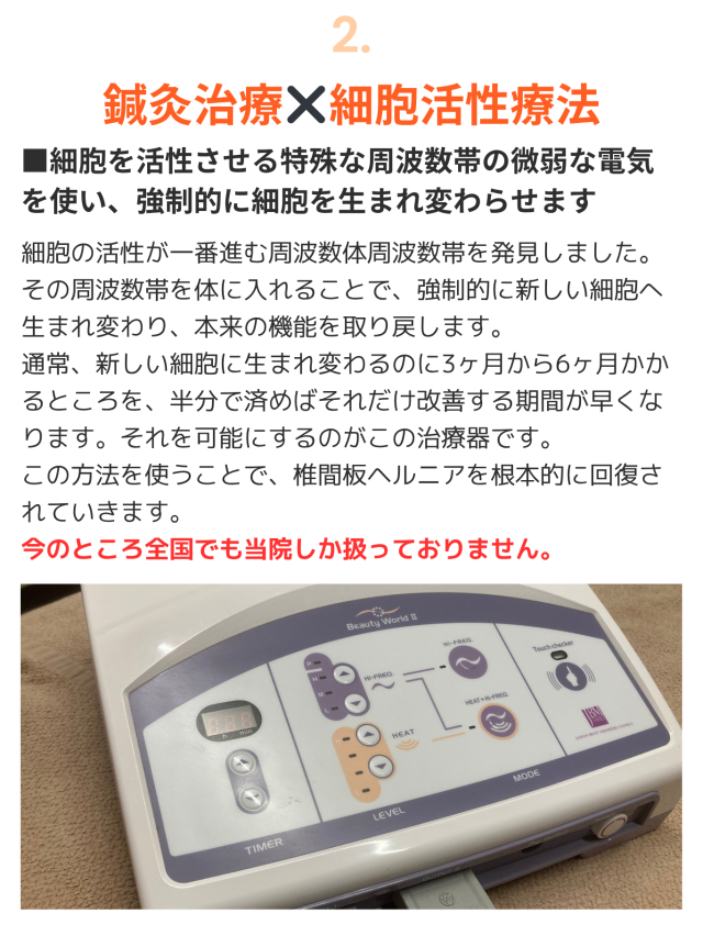 体の構造を根本的に見直し、治療法の研究を重ねた結果、体が修復するプロセスの中で、ある重要なポイントを発見しました。そのポイントを生かした独自の施術法を行うことで、様々な難病を抱えている方に対応できると確信しました。カウンセリングの中でもお話ししますが、体の構造と施術法を知ると、なぜ当院が行う施術法が改善に導けるのかがご理解頂けると思います。